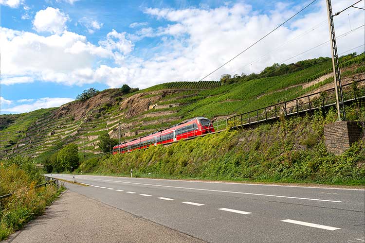 Die Rheintalbahn zwischen Karlsruhe und Basel ist mit rund 300 Zügen täglich eine der am stärksten frequentierten Strecken innerhalb des transeuropäischen Netzes (TEN).